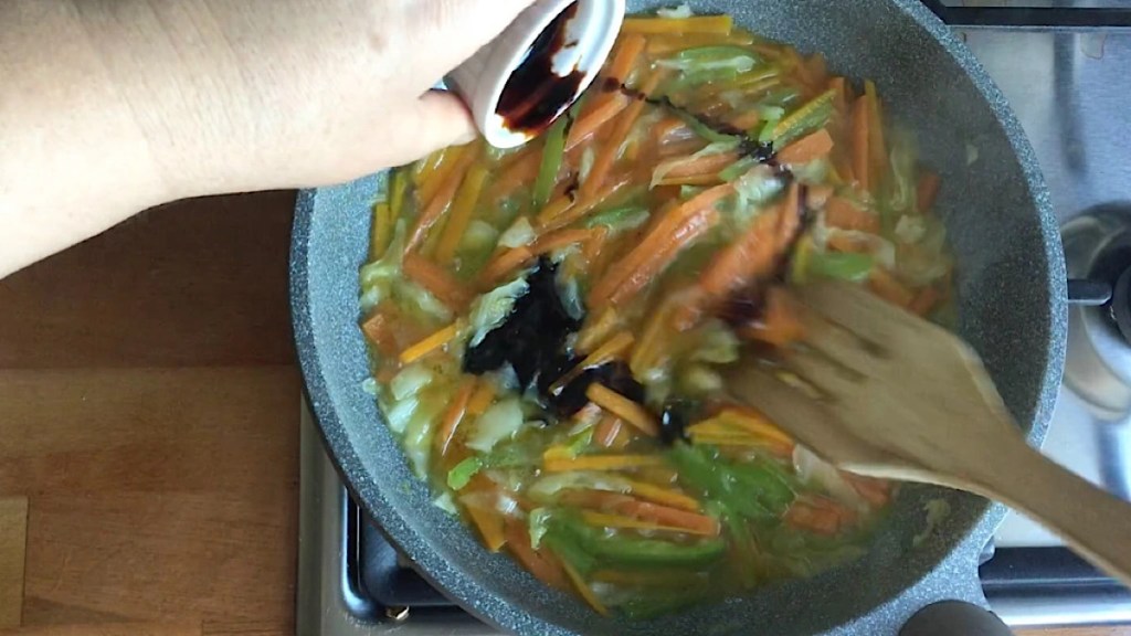 - çorba kaşığı soya sosu ekleyiniz. Eğer soya sosunuz seyretilmiş ise 2 kaşık koyun.