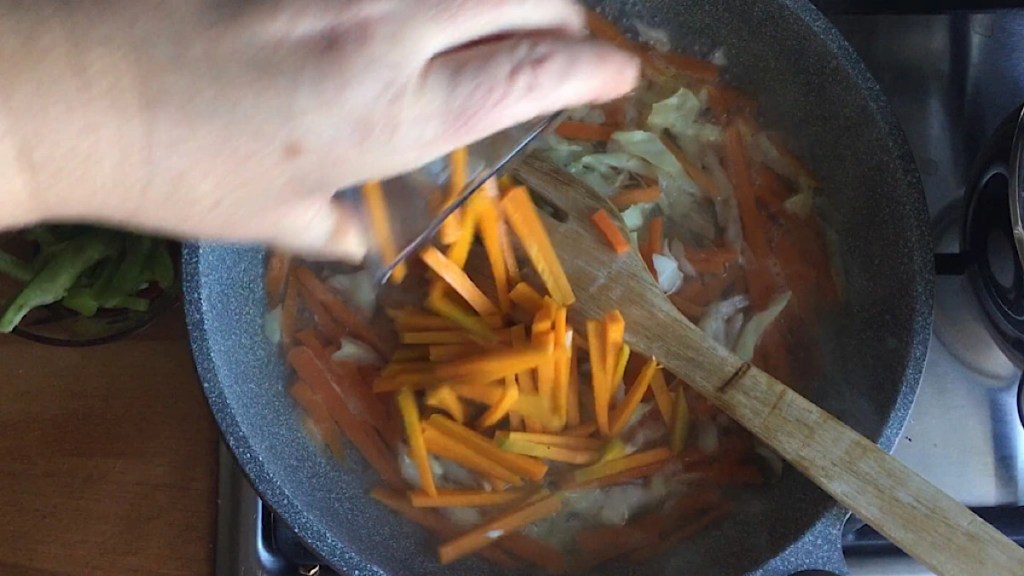 - Lahanaları ve havuçları yıkayıp ince ince doğrayın ve suyun içine koyun.