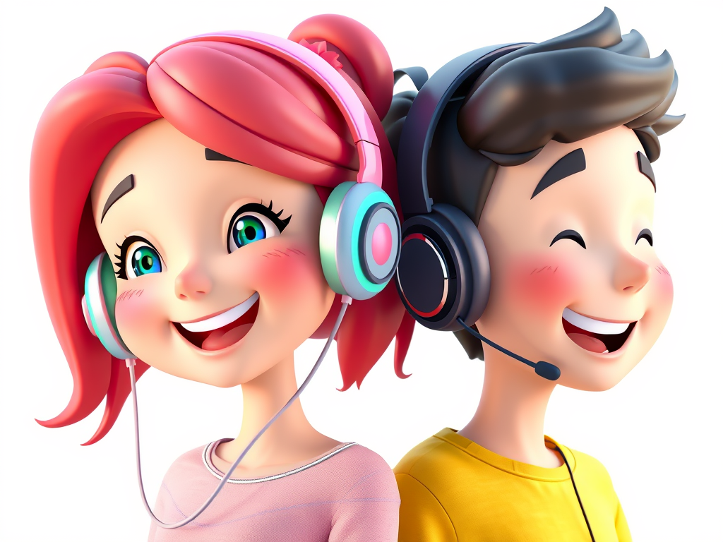 Arkadaşlarımla kafede otururken kulaklıkla müzik dinliyoruz.