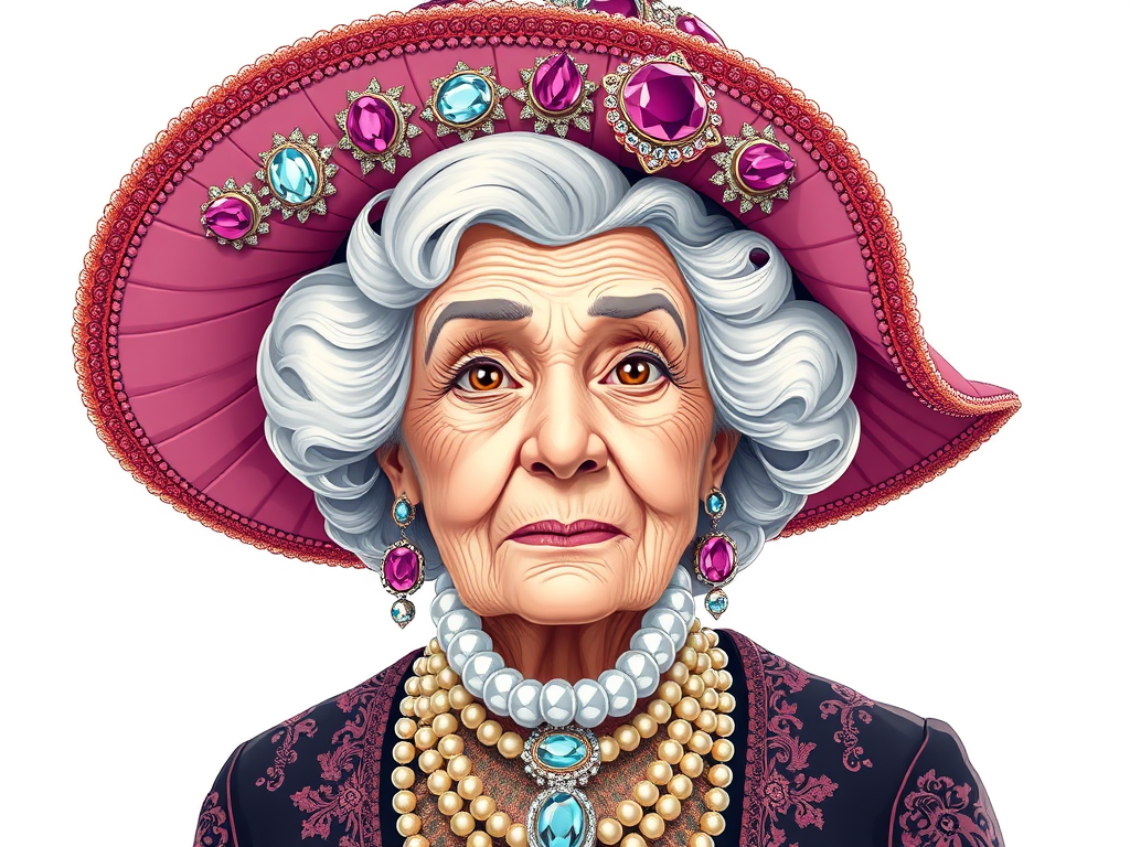 Bu zengin kadın pembe bir şapka giyiyor.