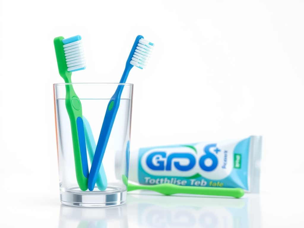 Cam bardağın içinde 2 adet diş fırçası var , biri yeşil ve biri mavi.
