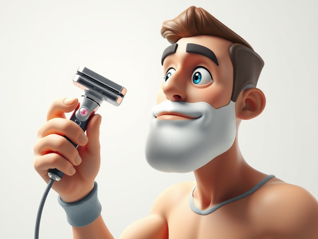 This man is shaved with shaving machine.